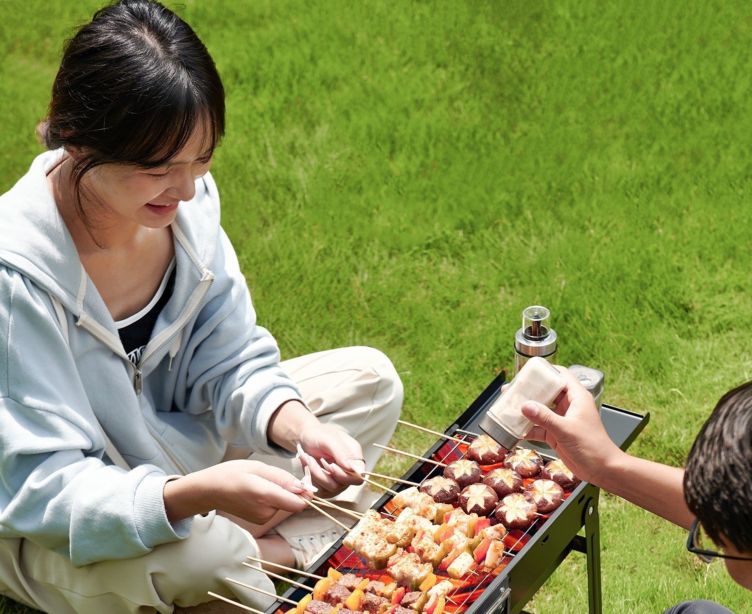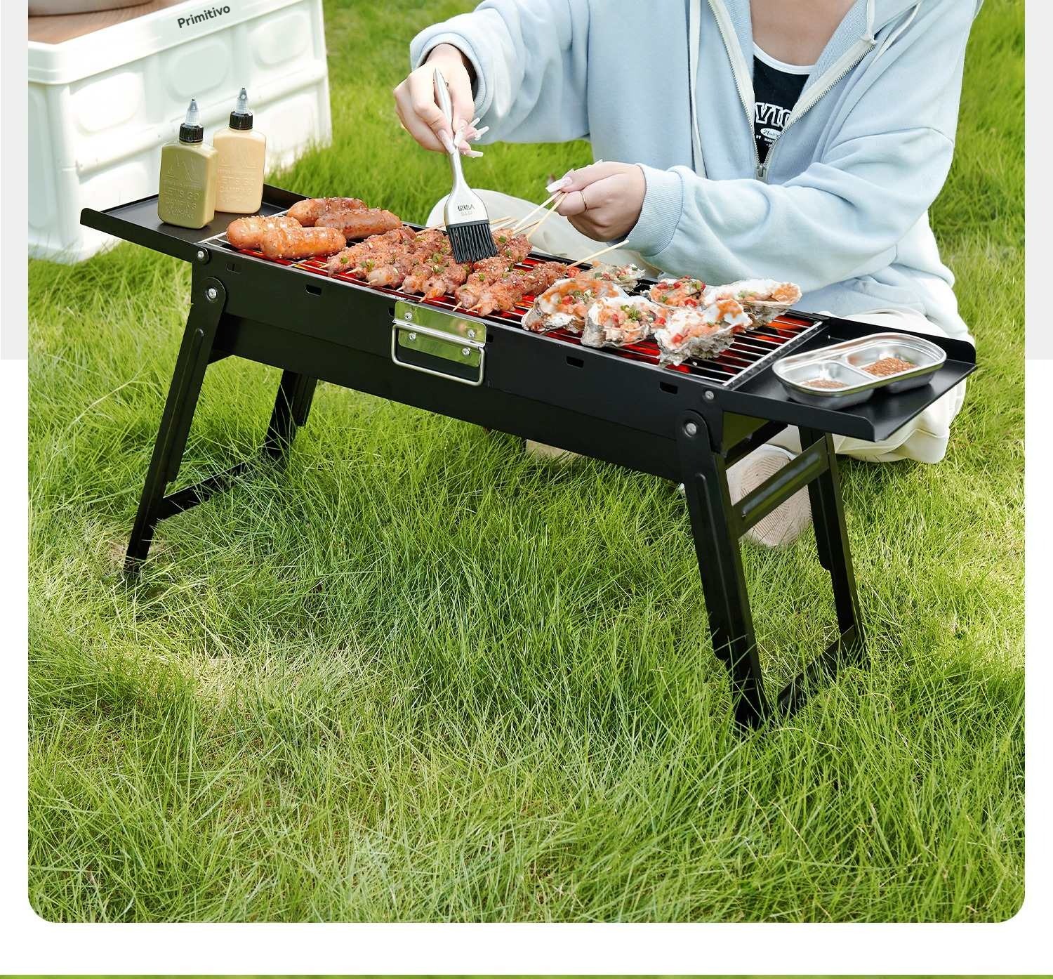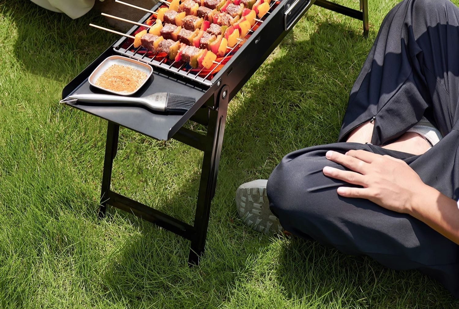 Grelhador dobrável para churrasco, grelhador pequeno para churrasco sem fumo